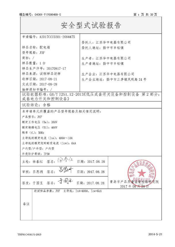 JXF配电箱试验报告